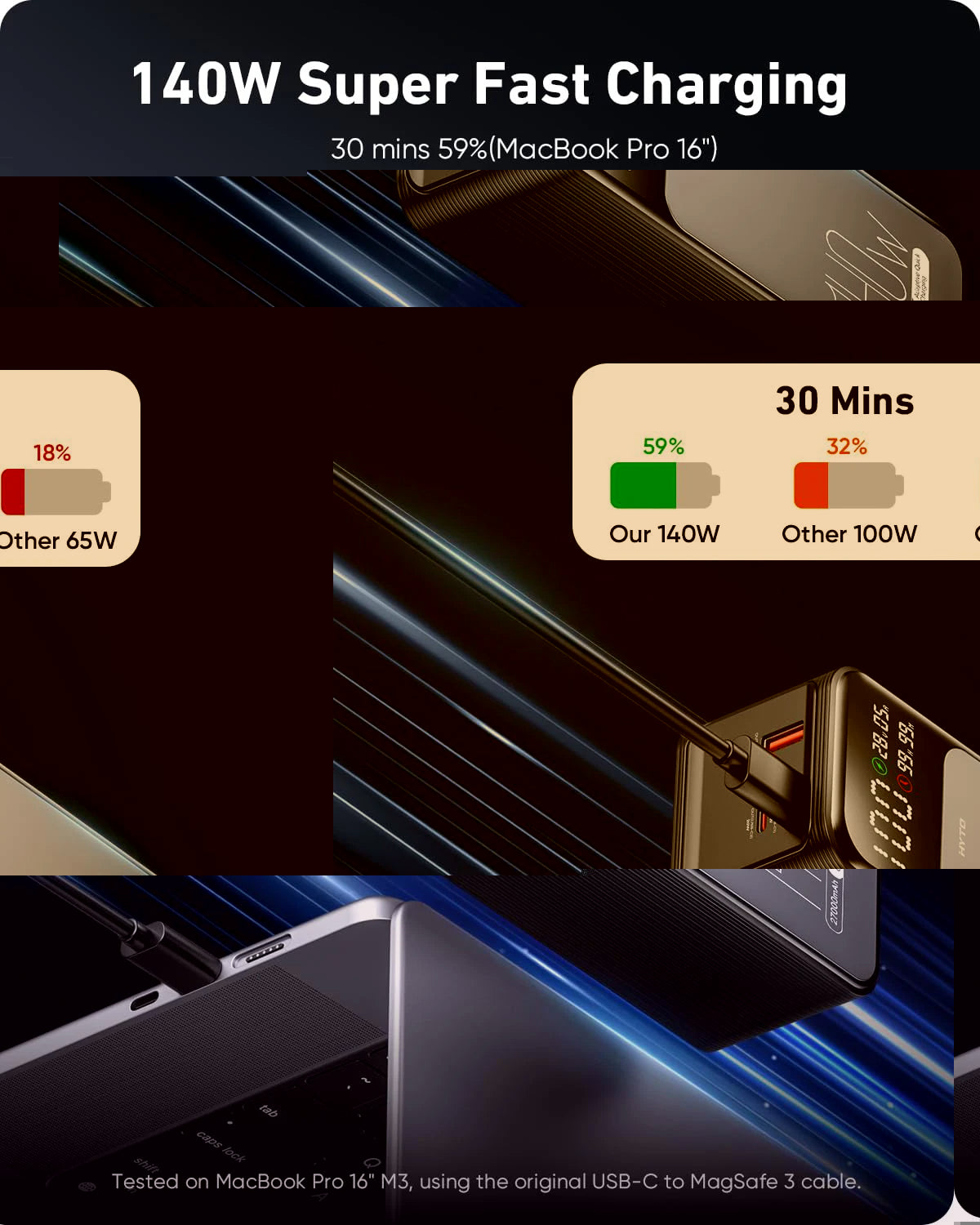 Denne powerbanken støtter Power Delivery 3.1 på hele 140 watt, som betyr: