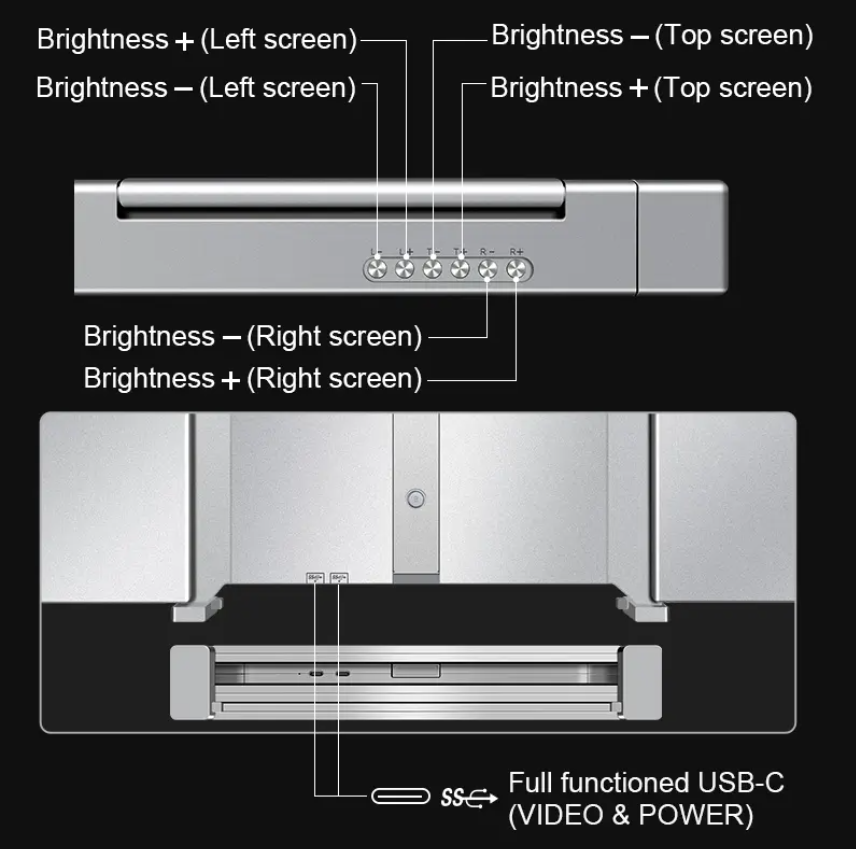Konfigurasjon | 3 x 14" IPS-LCD 1920x1080px 60Hz 16:9 |
