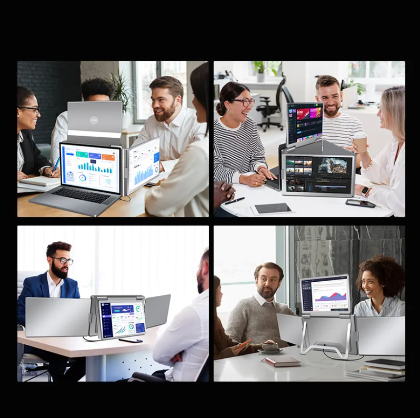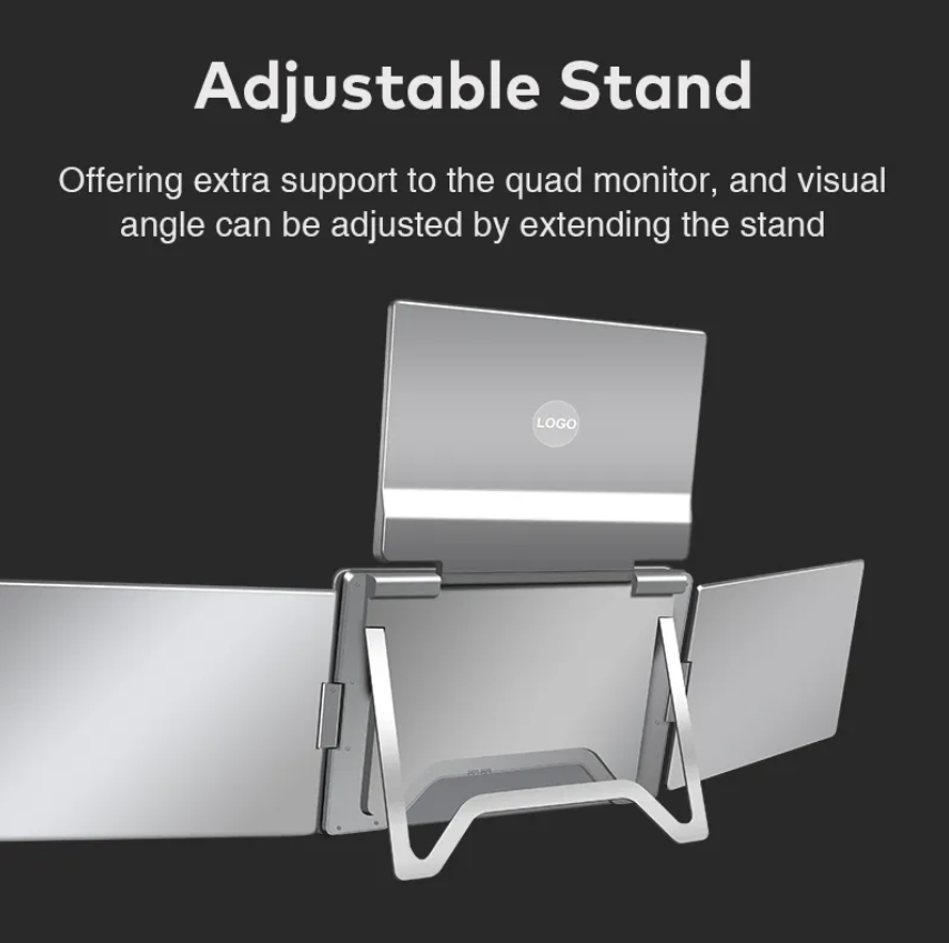 Ønsker du mer plass til oppgavene dine uten å måtte sette opp et helt kontor? Med vår quad skjerm-extender med egen fot(bakmotert) får du her tre ekstra skjermer til laptopen din – alt koblet til med kun én USB-C-kabel. (nettadapter behov for å levere nok strøm til den 3 monitoren)
